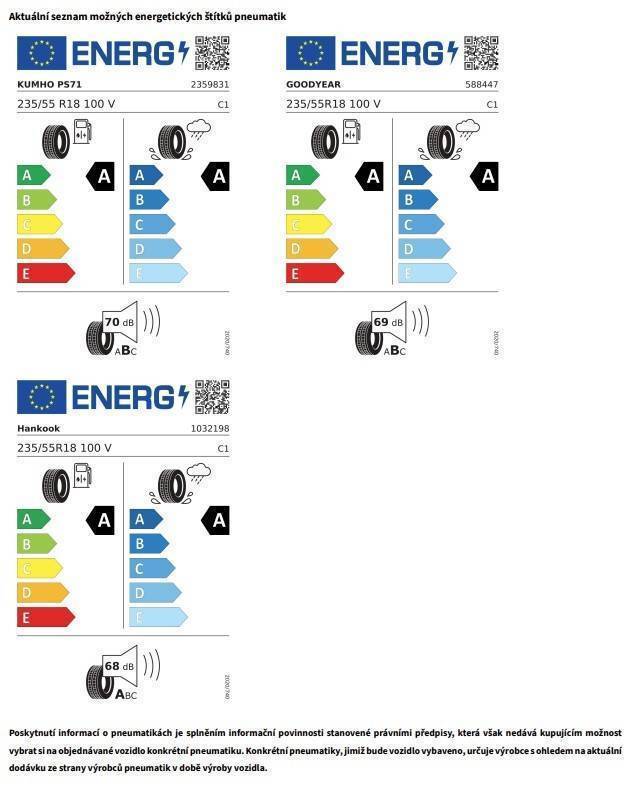 Tříbodové bezpečnostní pásy, vpředu a vzadu, vpředu s výškovým nastavením a předepínači, signalizace nezapnutých bezpečnostních pásů (grafická a akustická)