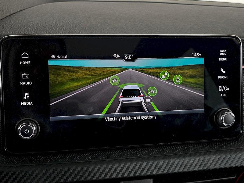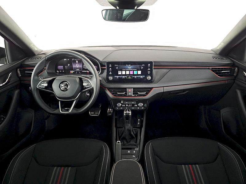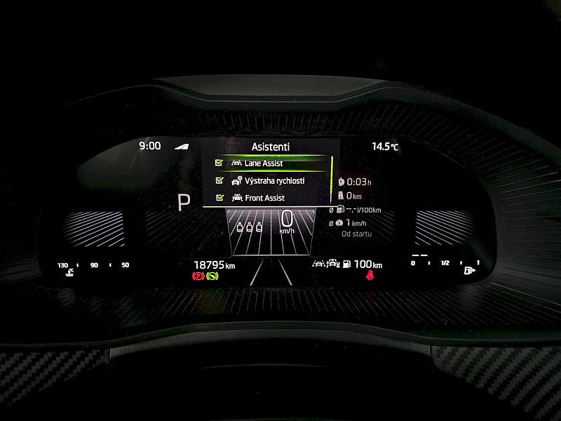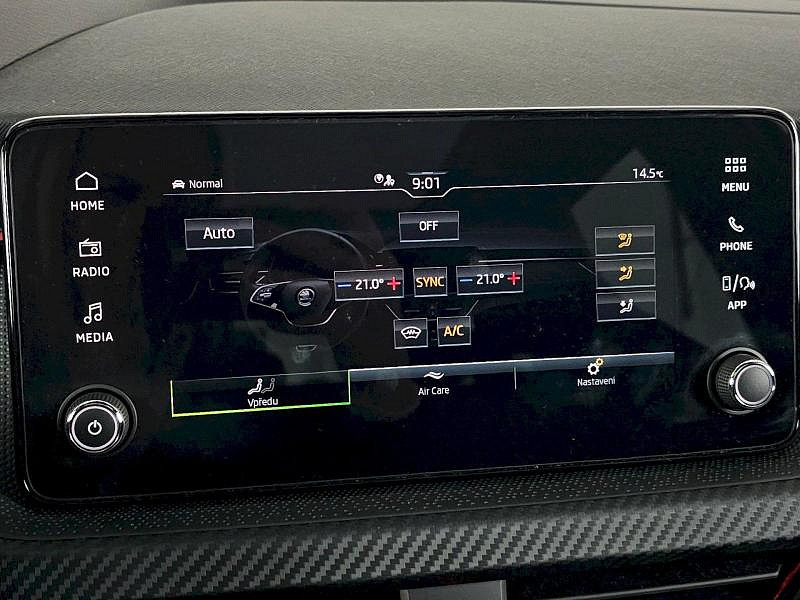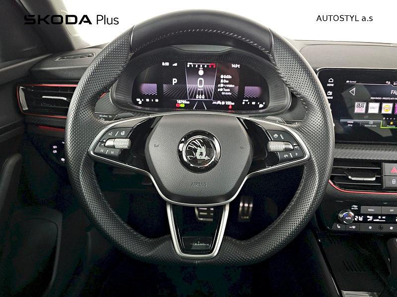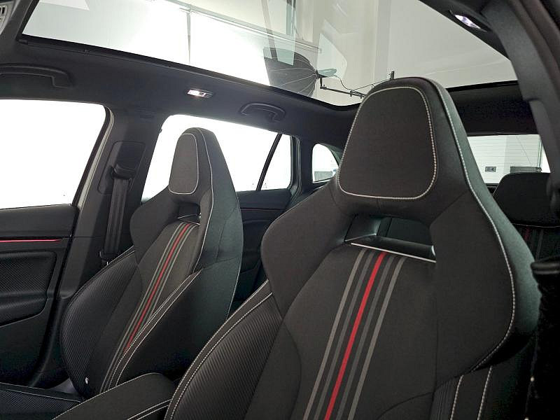 Rezervní kolo (neplnohodnotné), Vyhřívané čelní sklo, Tažné zařízení, Škoda prodloužená záruka na 5 let, do 100 000 km Bezdrátové nabíjení telefonu, Rozpoznání únavy řidiče, 7stupňová automatická převodovka, Infotainment Media 8,25, KESSY pro alarm - bezklíčové odemykání a zamykání, Virtuální kokpit mini 8, 8 reproduktorů, Tempomat s omezovačem rychlosti, Mlhové světlo a odbočovací světlo, Dvouzónový CLIMATRONIC, Vyhřívané trysky ostřikovačů čelního skla, Bezdrátový SmartLink, Alarm, Kontrola tlaku v pneumatikách, Bederní opěra, ručně nastavitelná, v opěradlech předních sedadel, Matrix-Beam, Full LED hlavní světlomety, Světelný a dešťový asistent, Kola z lehké slitiny Kajam Aero 6,5J x 17 ET40 černá leštěná s aero kryty, Loketní opěra Jumbobox, Asistent udržování jízdního pruhu (Lane Assist), Front Assist - s upozorněním a zabržděním při hrozící kolizi s vozidly, chodci a cyklisty, Vyhřívání předních sedadel s oddělenou regulací, Automatické stmívání pro vnitřní zpětné zrcátko, Tažné zařízení, Bezpečnostní šrouby kol, Přídavná spodní ochrana pohonné jednotky, Drive Mode Select bez Chassis Presets, Panoramatické střešní okno, Hliníkové pedály, Rozšířená a prediktivní ochrana chodců a cyklistů, Rezervní kolo neplnohodnotné, USB-C u vnitřního zpětného zrcátka, Ambientní osvětlení, Rozpoznávání dopravních značek, Sportovní sedadla, Externí, USB typ C, datová(é) zásuvka(-y) a nabíjecí zásuvka(-y) se zvýšeným nabíjecím výkonem
